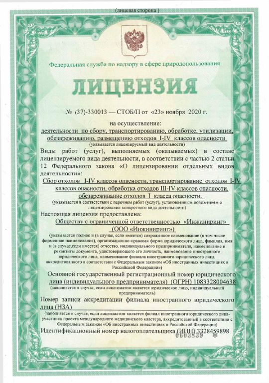 ООО «Инжиниринг» — сохраняем здоровье планеты с 2008 года ИНН: 3328459898 Время работы: ПН-ПТ 8:00-18:00 Телефон: Адрес: г. Владимир, ул. Добросельская, д. 164 А